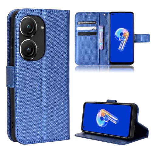 Caja de Teléfono de Cuero para Asus Zenfone 10 y 9 con Textura de Diamante (Azul)