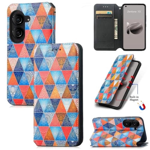 Funda de Cuero Magnética Caseneo para Asus Zenfone 10 con Diseño Rhombus Mandala