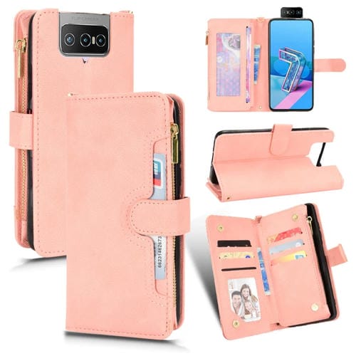 Funda de Cuero para Asus Zenfone 7 Pro ZS671KS con Textura Litchi y Cremallera (Rosa)