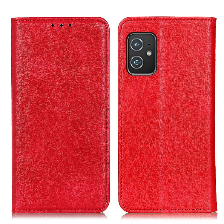 Funda de Cuero Magnética Asus Zenfone 8 Crazy Horse Texture con Soporte y Ranuras para Tarjetas (Rojo)