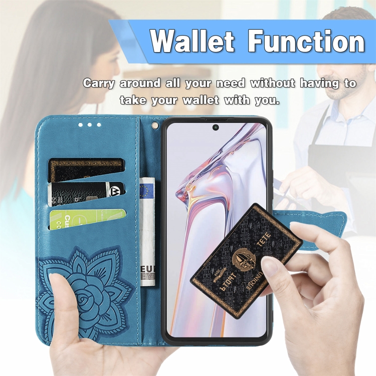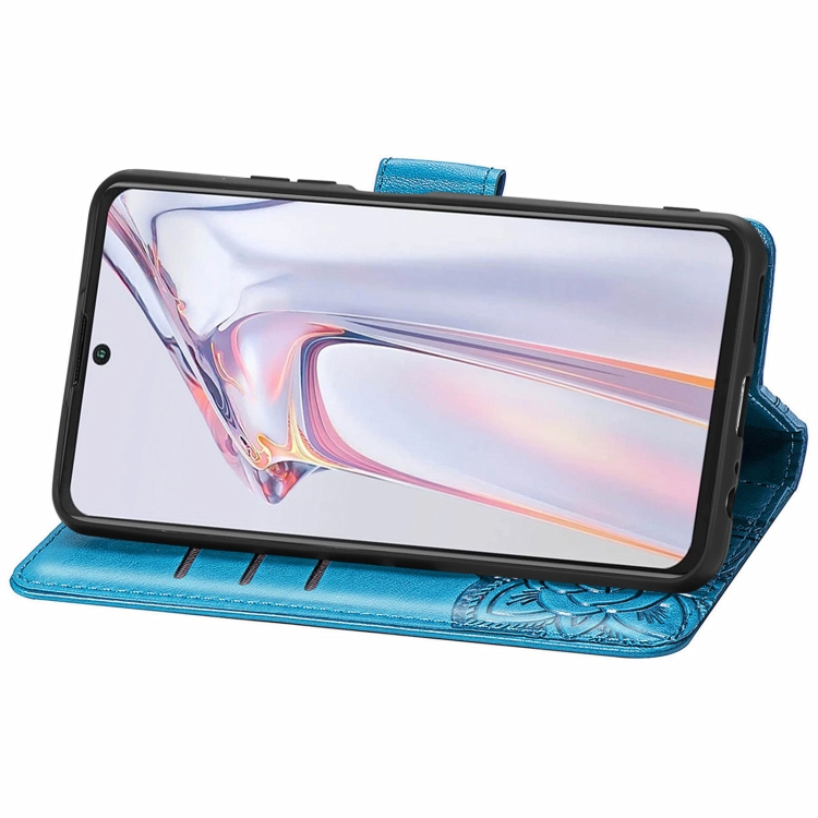 Funda de Cuero para BlackView A100 Butterfly Love Flower Horizontal Flip con Soporte, Tragamonedas, Billetera y Cordón (Azul)