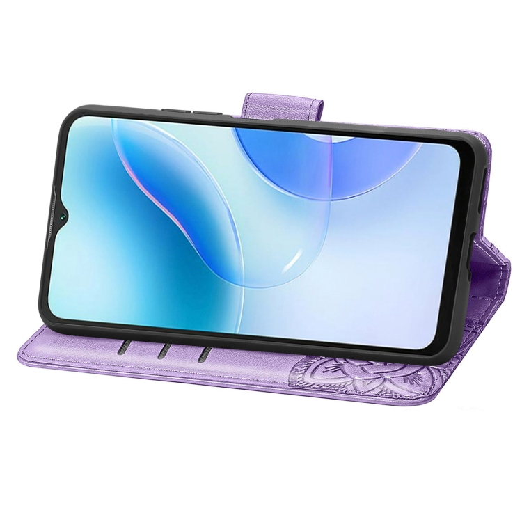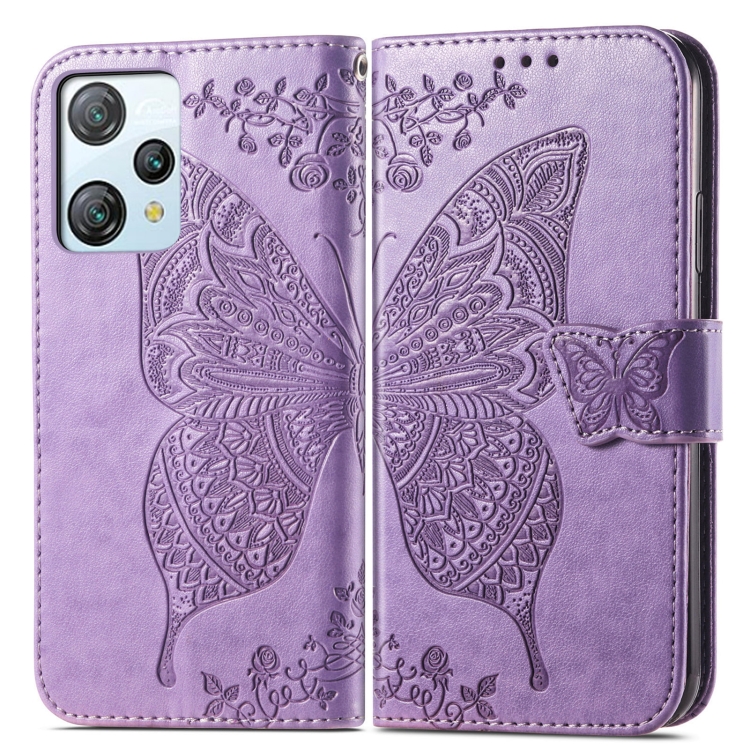 Estuche para BlackView A53 Butterfly Love Flower de Cuero en Relieve (Lavanda)