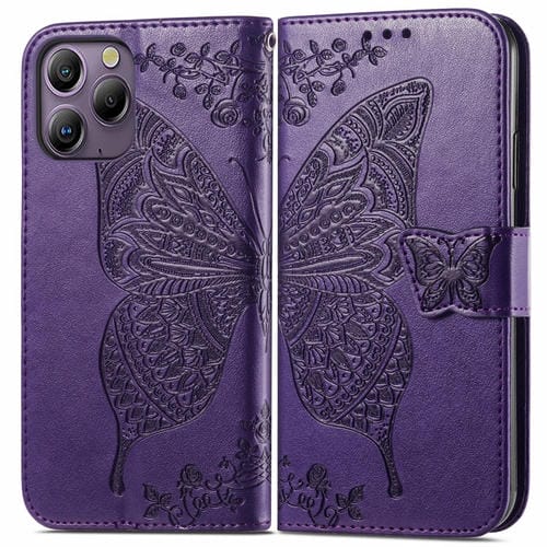 Funda para Teléfono BlackView A96 Cuero con Relieve Flor y Mariposa (Púrpura Oscuro)