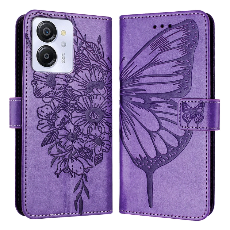 Funda de Cuero para BlackView Color 8 con Mariposa en Relieve (Púrpura)