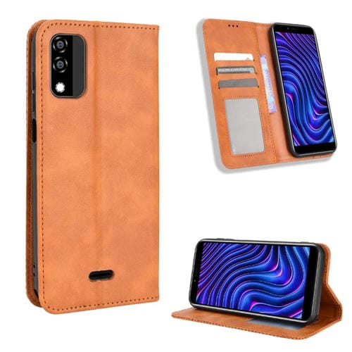 Funda de Cuero para Blu C5 Max 2022 con Hebilla Magnética y Textura Retro (Marrón)