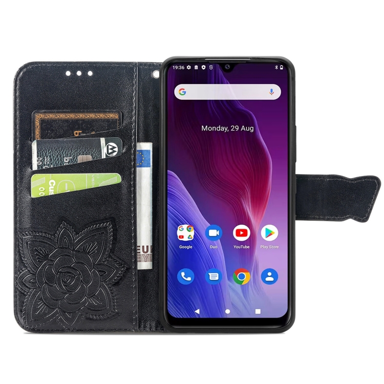 Funda para Cubot P60 Butterfly Love Flower de Cuero en Relieve (Negro)