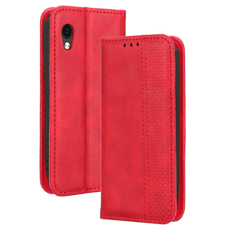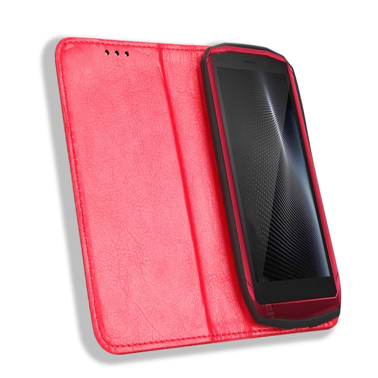 Funda de Cuero para Cubot Pocket y P50 con Hebilla Magnética y Textura Retro (Rojo)