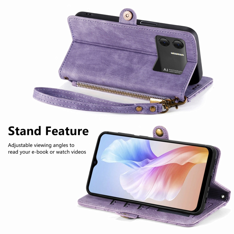 Funda Cartera para Doogee X98 Pro / X98 con Cremallera Geométrica y Hebilla Lateral (Púrpura)