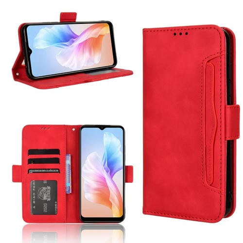 Funda de Cuero para Doogee X98 con Textura Becerro y Ranuras para Tarjetas (Rojo)