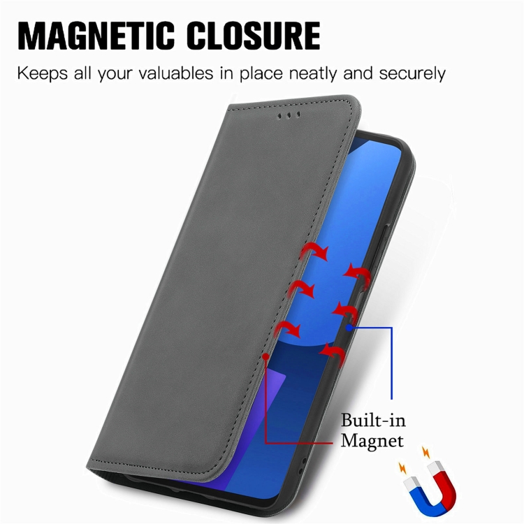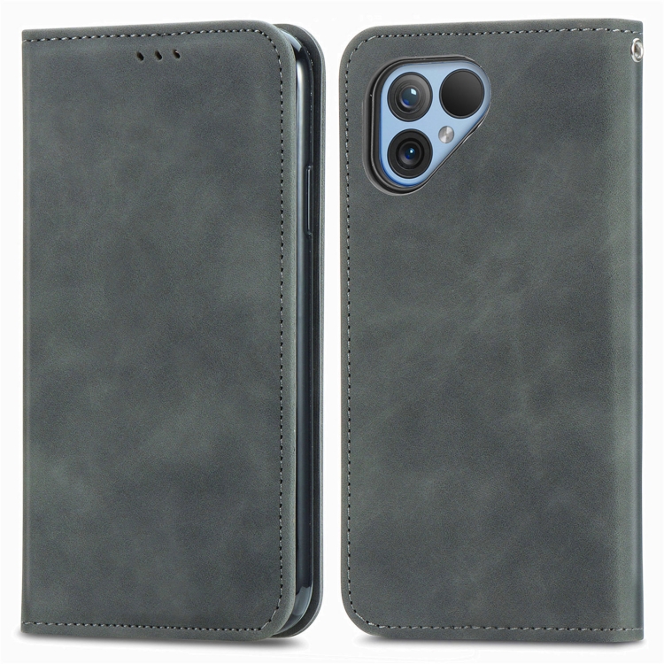 Funda de Cuero para Fairphone 5 con Tapa Magnética Retro Skin Feel (Gris)