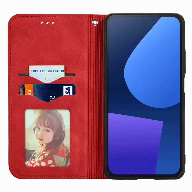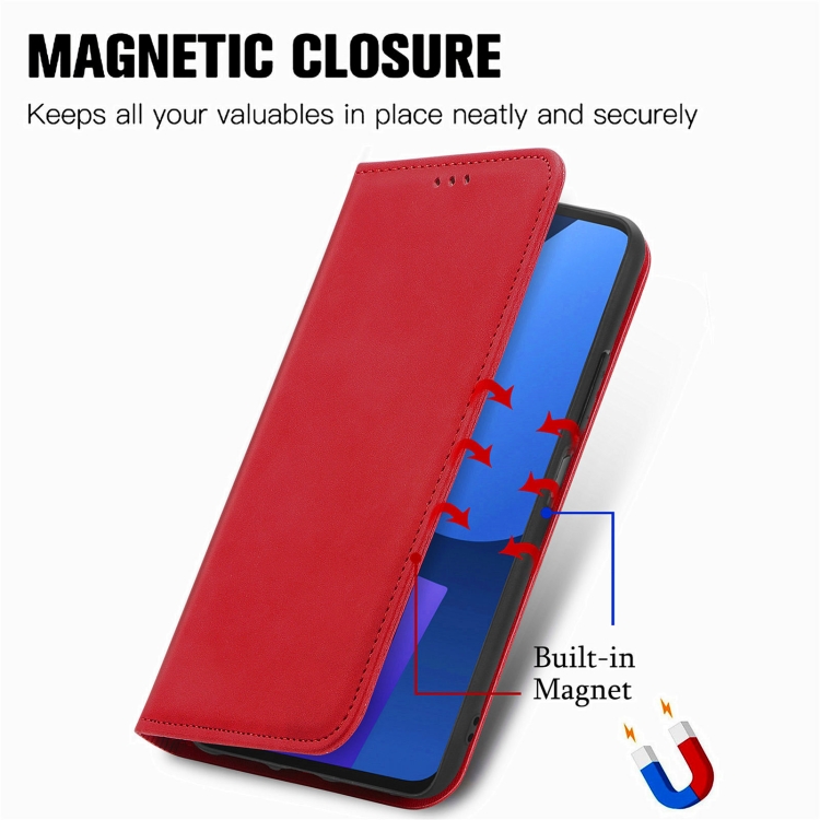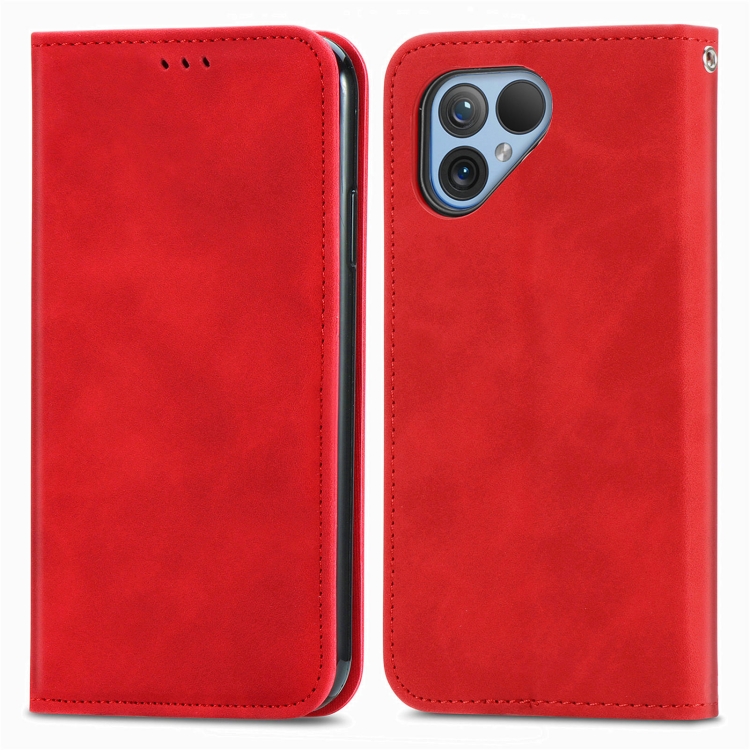 Funda de Cuero con Tapa Magnética para Fairphone 5 Retro Skin Feel (Rojo)