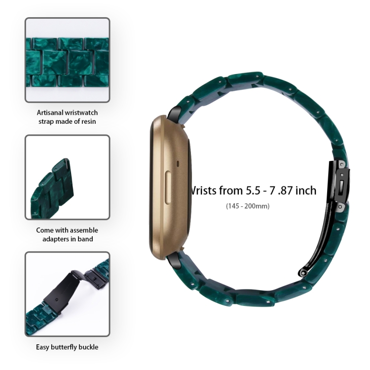Correa de Reloj de Resina para Fitbit Versa 3 y Sense Universal (Flor Verde Oscuro)