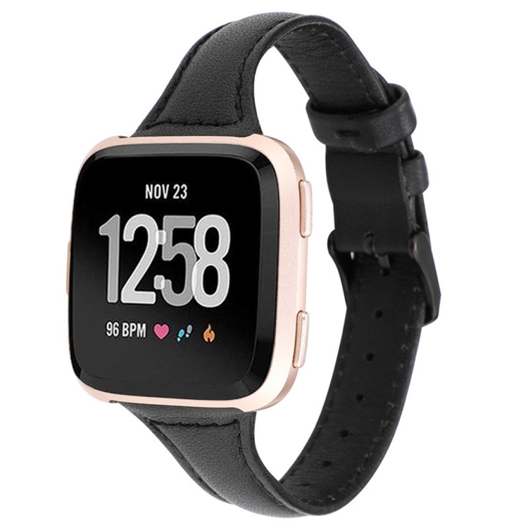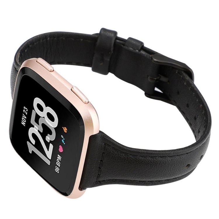 Correa de Cuero Genuino Crazy Horse para Fitbit Versa (Negro)