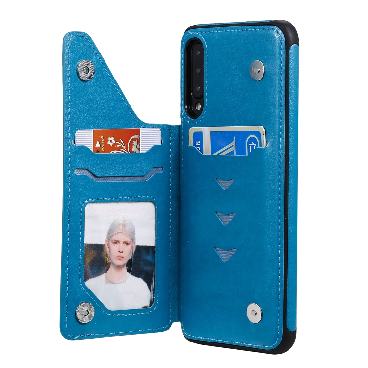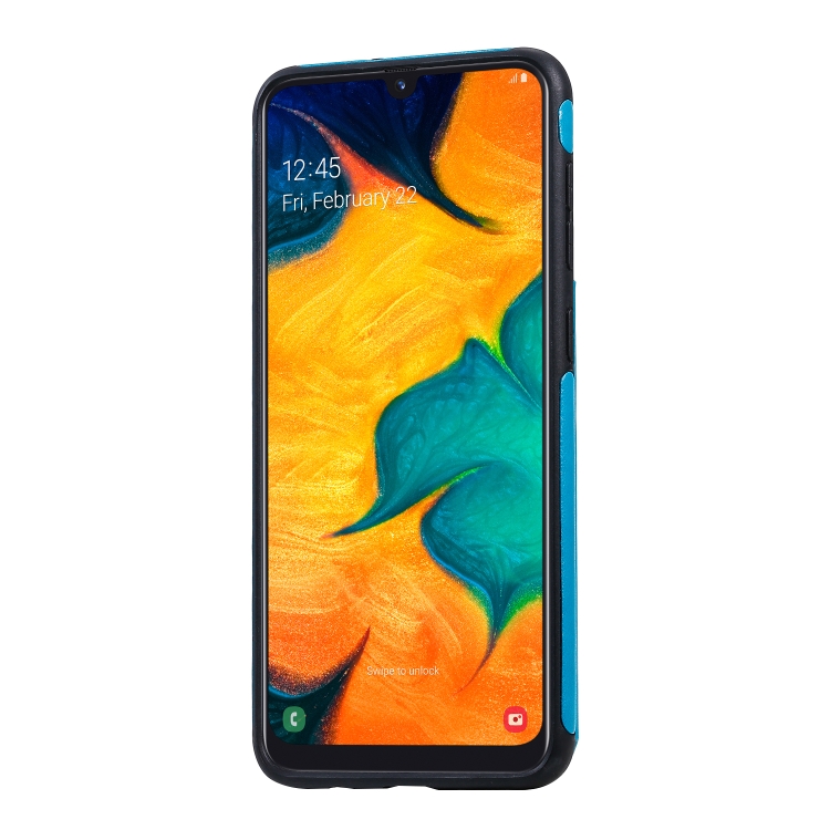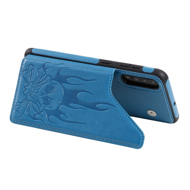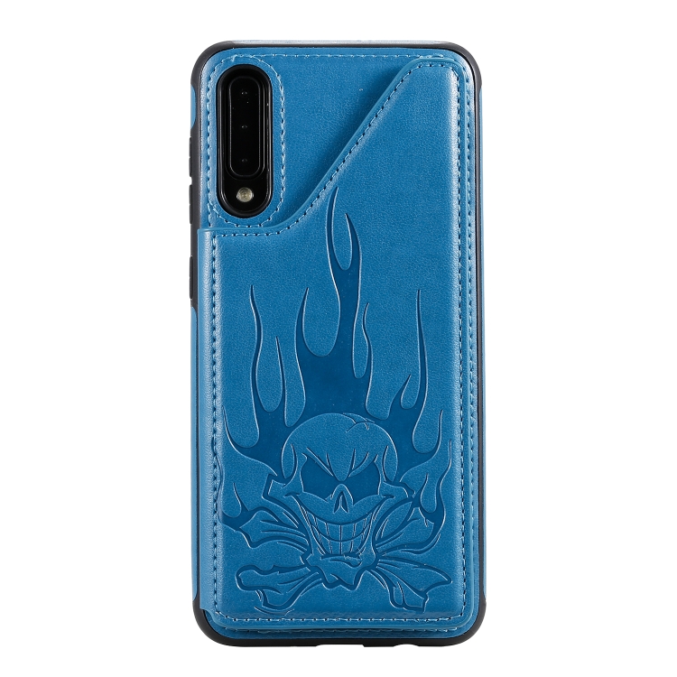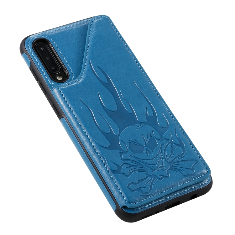 Estuche Protector para Galaxy A50 Skull Head a Prueba de Golpes con Soporte y Ranuras para Tarjetas (Azul)