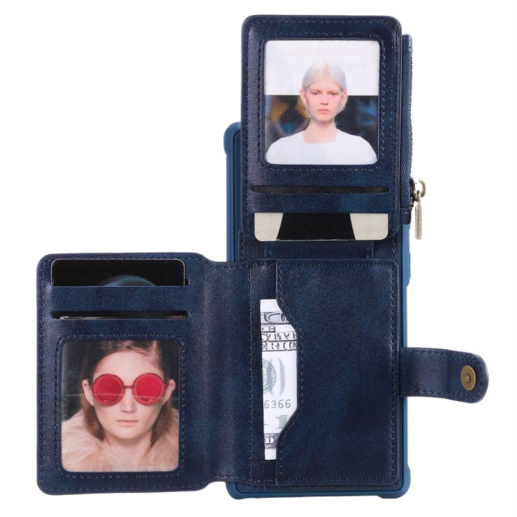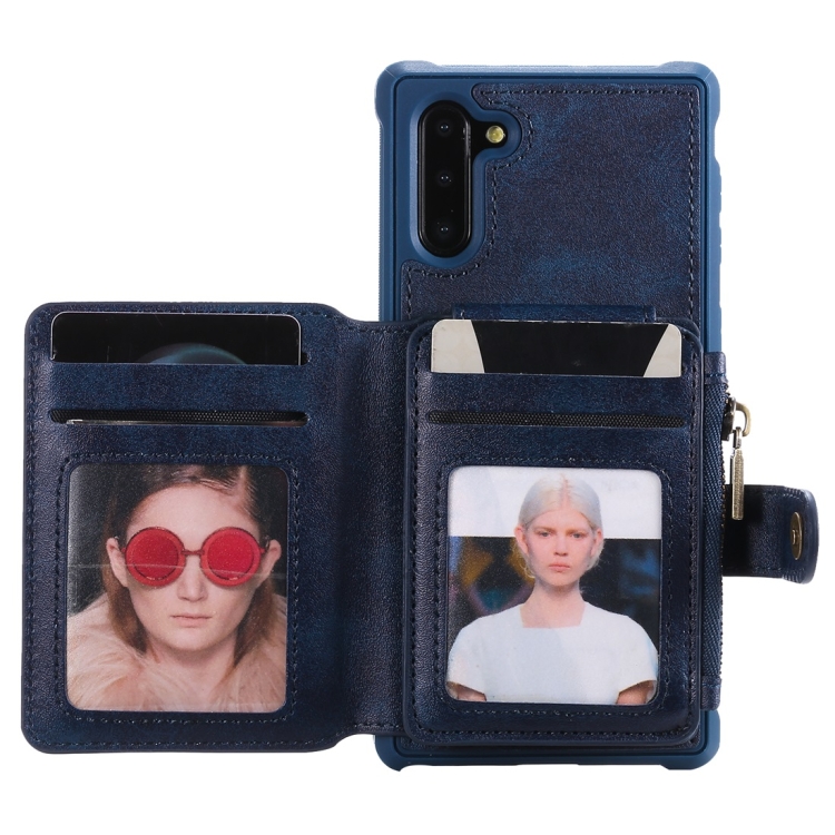 Estuche Protector para Galaxy Note 10 con Cremallera Ranuras Tarjetas Soporte Fotos Billetera (Azul)