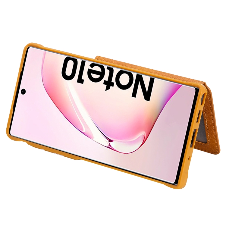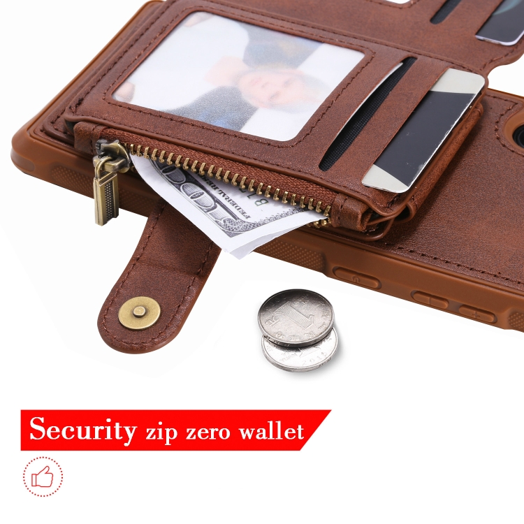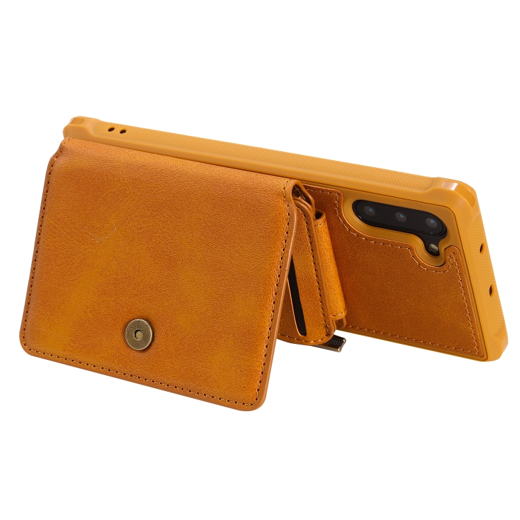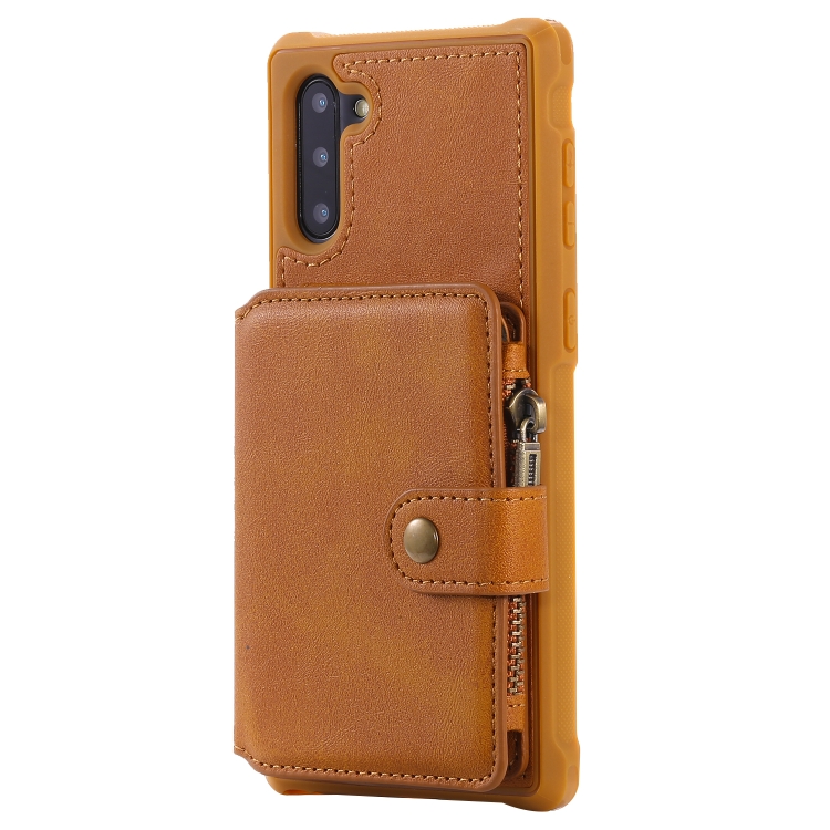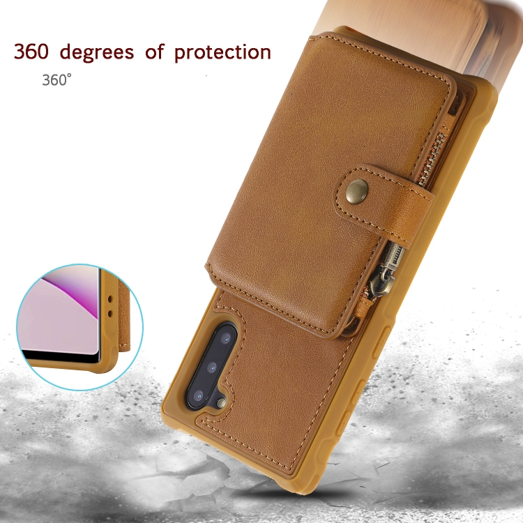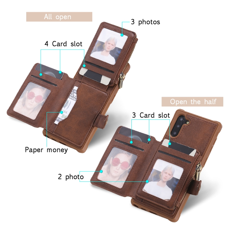 Estuche Protector para Galaxy Note 10 con Cremallera Hebilla Soporte Ranuras Tarjetas Billetera Cordón Marcos Fotos (Marrón)