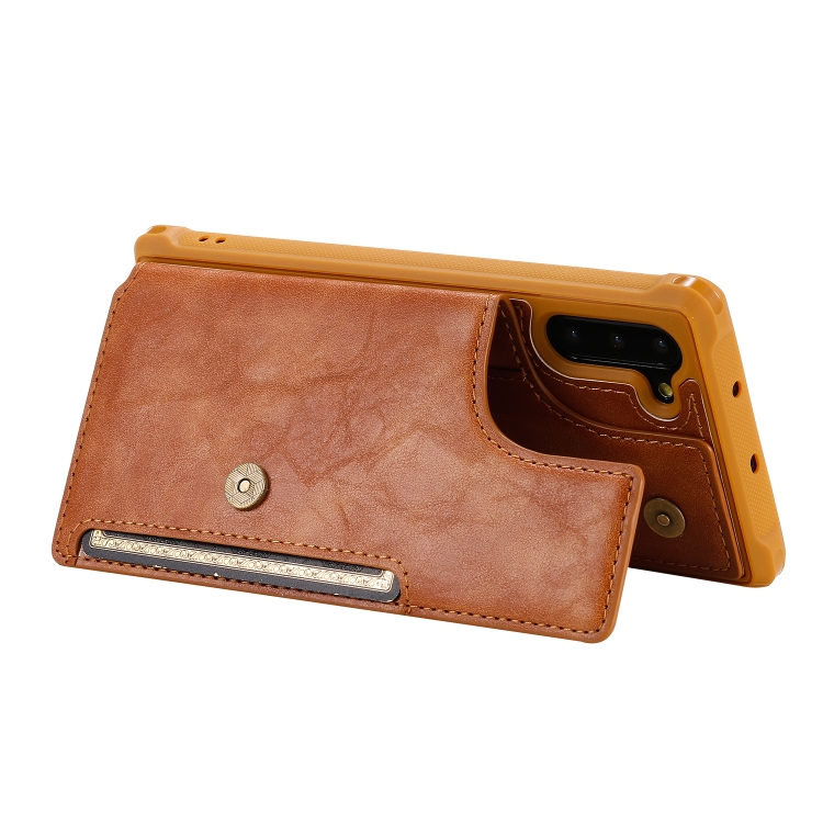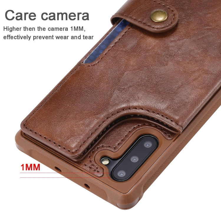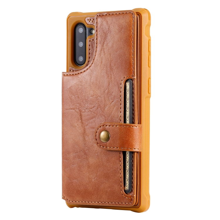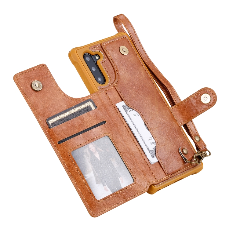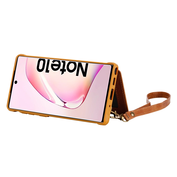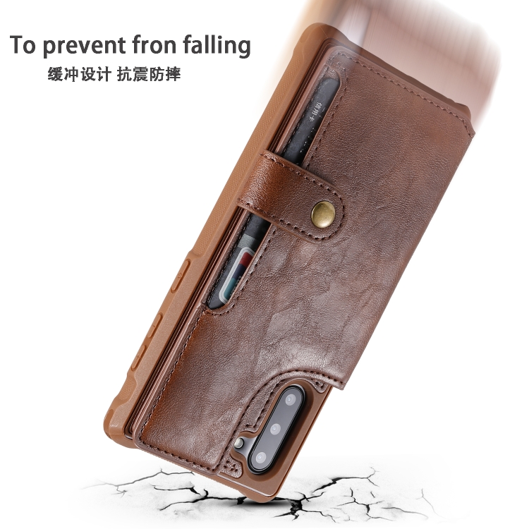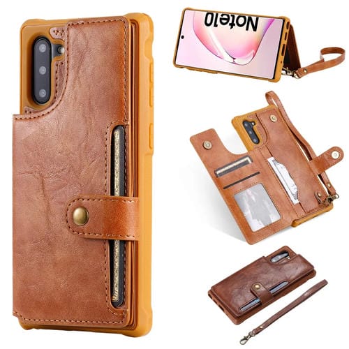 Estuche Protector para Galaxy Note 10 con Cremallera Hebilla Soporte Ranuras Tarjetas Billetera Cordón Marco de Fotos (Marrón)