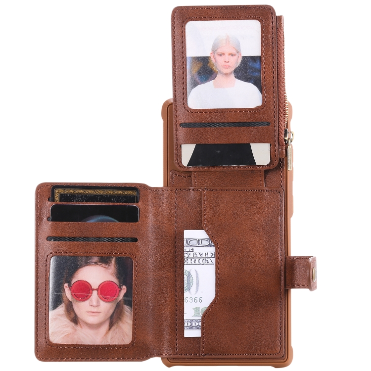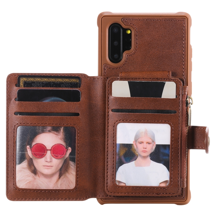Estuche Protector para Galaxy Note 10 Plus con Cremallera a Prueba de Golpes Ranuras para Tarjetas Soporte y Billetera (Café)