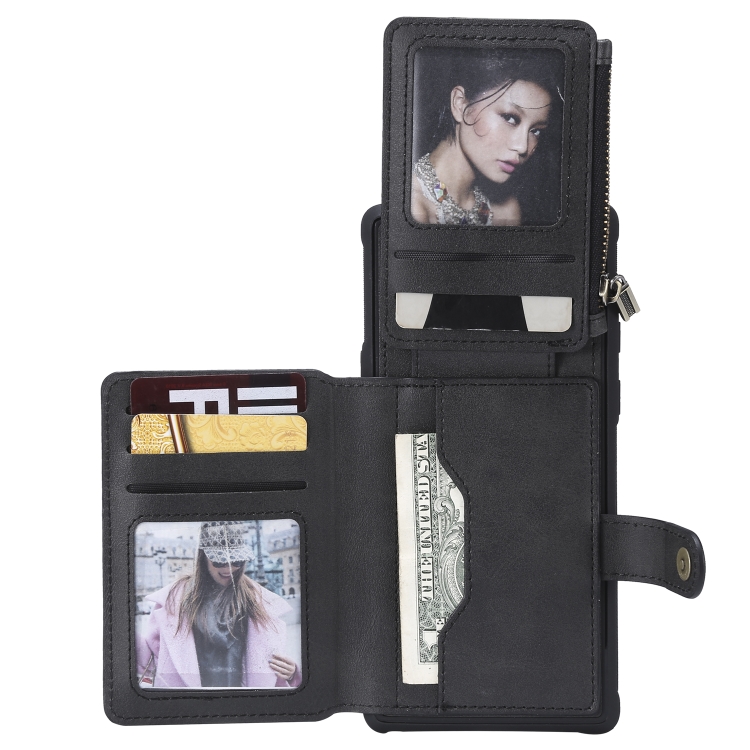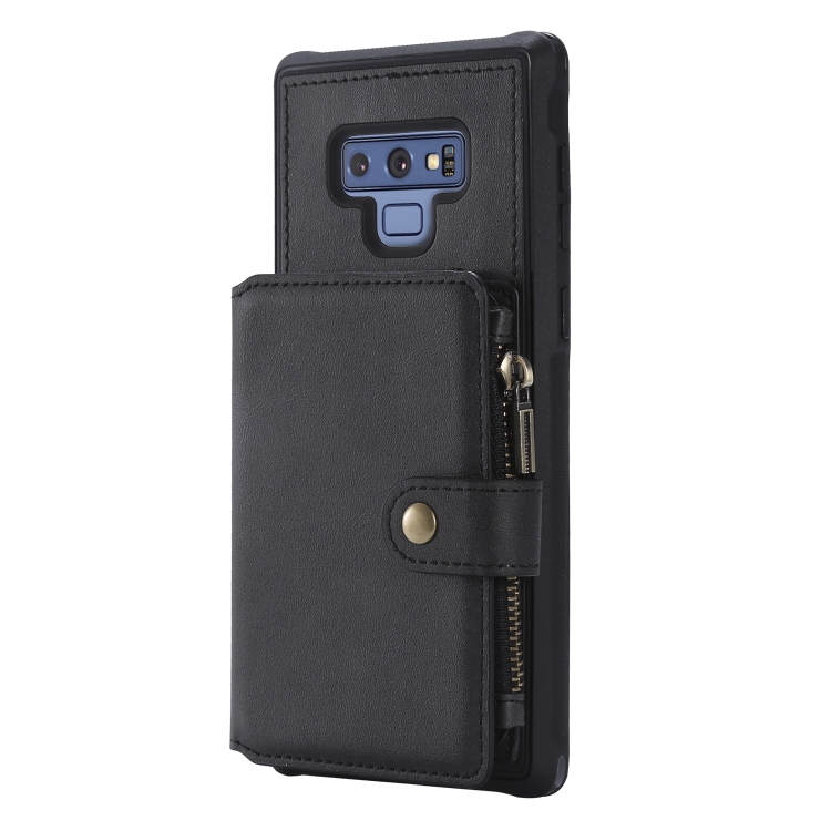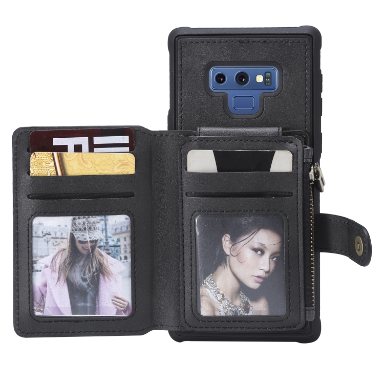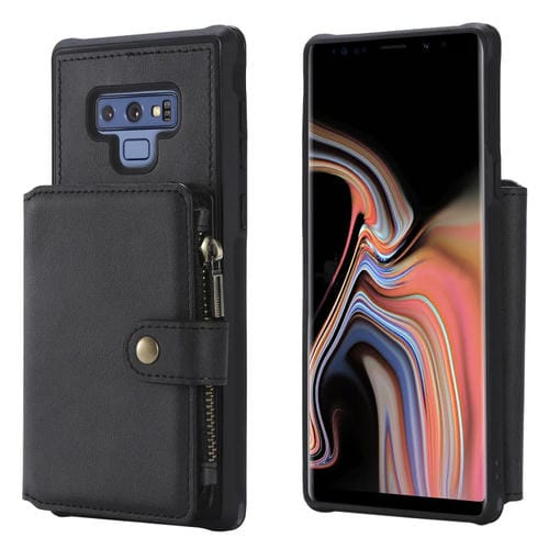 Estuche Protector para Galaxy Note9 con Cremallera Ranuras para Tarjetas Soporte Fotos Billetera (Negro)