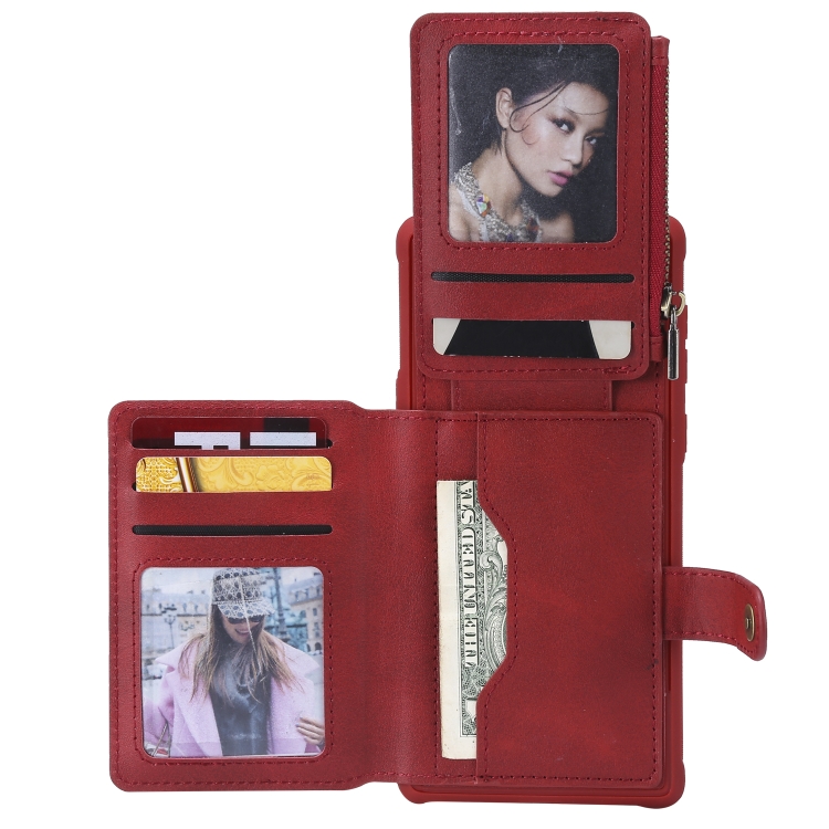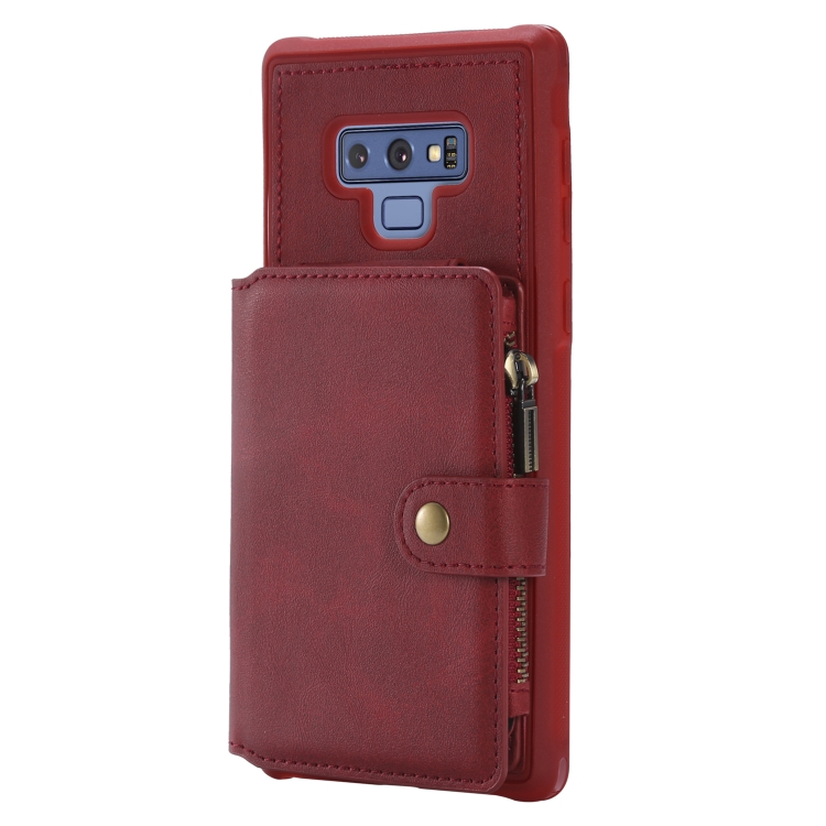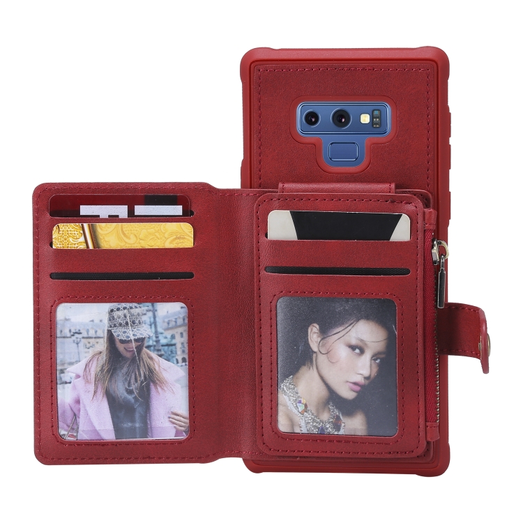 Estuche Protector para Galaxy Note9 con Cremallera Ranuras para Tarjetas Soporte y Función Billetera (Rojo)