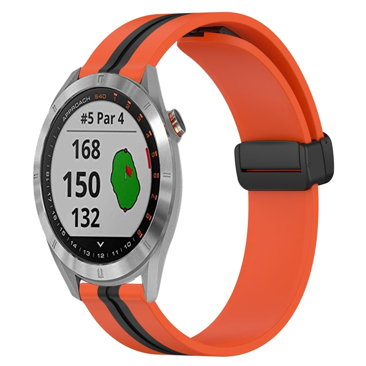 Correa de Reloj de Silicona para Garmin Approach S40 20mm con Cierre Magnético Plegable (Naranja + Negro)