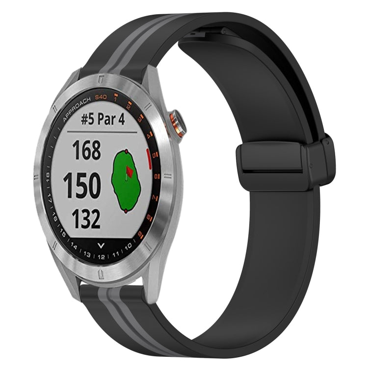 Correa de Reloj de Silicona para Garmin Approach S40 20mm con Cierre Magnético Plegable (Negro + Gris)