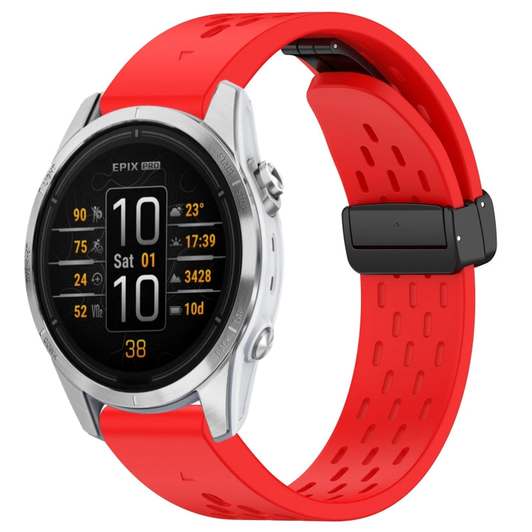 Correa de Reloj de Silicona para Garmin Epix Pro 42mm 20mm con Hebilla Plegable Magnética (Rojo)