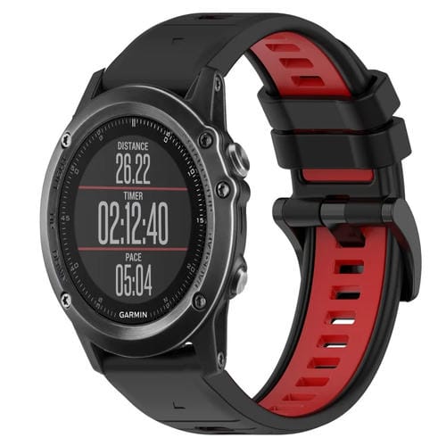 Correa para Garmin Fenix 3 Hr 26mm Silicona Deportiva Bicolor (Negro + Rojo)