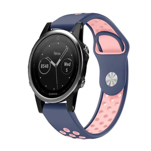 Correa de Reloj Silicona Deportiva para Garmin Fenix 5 22mm (Azul Medianoche + Rosa)