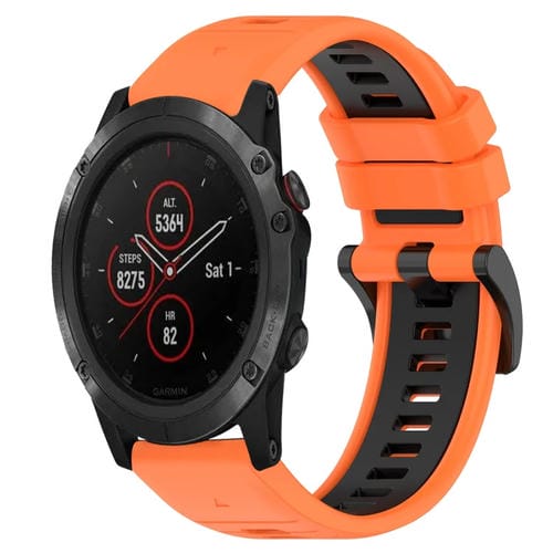 Correa para Garmin Fenix 5X Plus 26mm Silicona Deportiva Bicolor (Naranja + Negro)