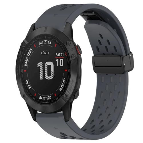 Correa de Silicona para Garmin Fenix 6 GPS con Orificio y Hebilla Plegable 22mm (Gris Oscuro)