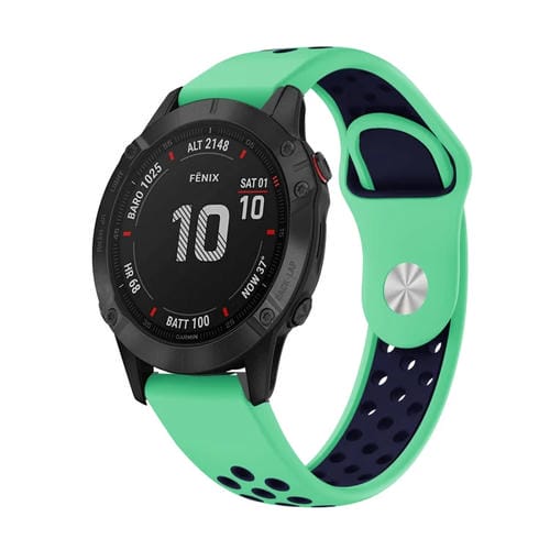Banda de Reloj Garmin Fenix 6 Pro 22mm silicona transpirable deportes (Verde Menta + Azul Medianoche)