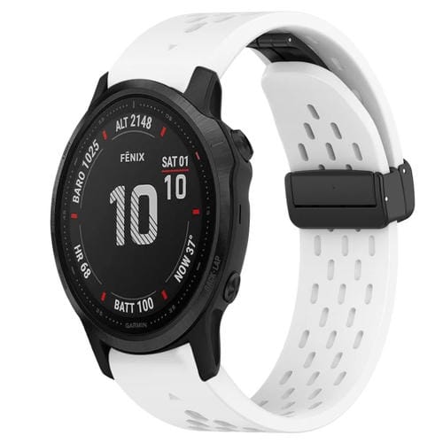 Correa de Silicona para Garmin Fenix 6S con Orificio y Hebilla Plegable de 20mm (Blanco)
