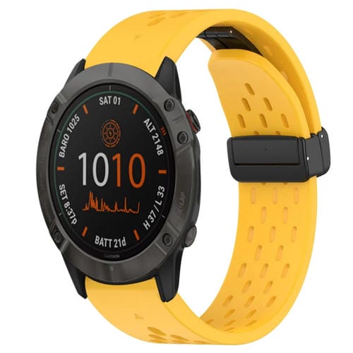 Correa de Reloj Silicona Garmin Fenix 6X 26mm con Orificio y Hebilla Plegable (Amarillo)