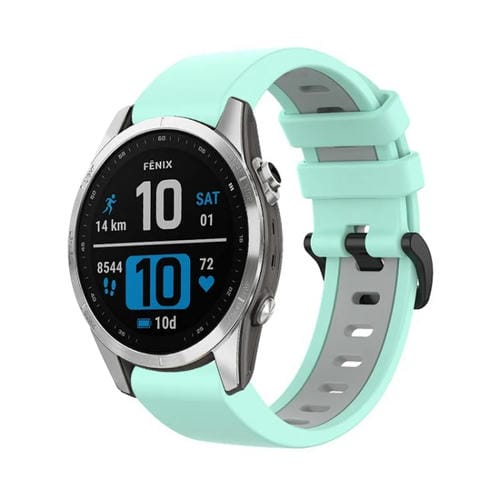 Correa de Silicona para Garmin Fenix 7 Pro 51mm Sports (Verde Azulado + Gris)