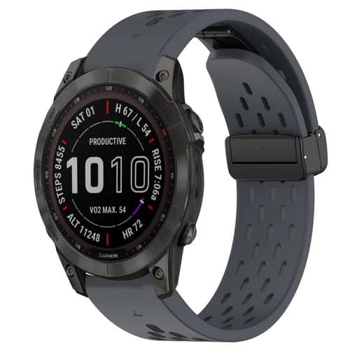 Correa de Silicona para Garmin Fenix 7 Sapphire Solar 22mm con Orificio para Hebilla Plegable (Gris Oscuro)