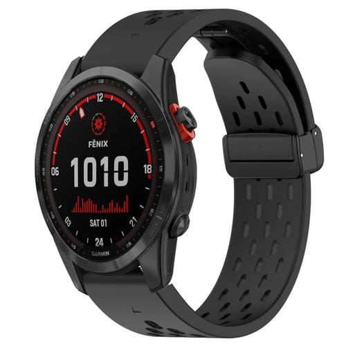 Correa de Silicona para Garmin Fenix 7S Solar con Orificio para Hebilla Plegable de 20mm (Negro)