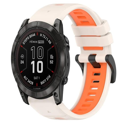 Para Garmin Fenix 7X Pro 51mm 26mm Sports Two-Color Silicone Watch Band (Starlight + Orange)