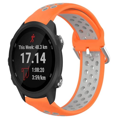 Banda de Reloj silicona para Garmin Forerunner 245 Music 20mm deportiva transpirable perforada (Naranja + Gris)
