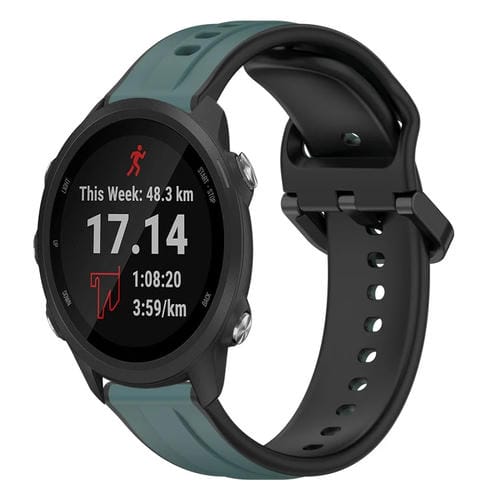 Banda de Reloj para Garmin Forerunner 245 Music Silicona Dos Colores Bucle Convexo 20mm (Verde Oliva + Negro)