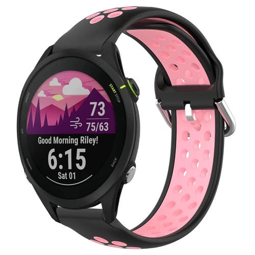 Correa de Reloj para Garmin Forerunner 255 22mm Silicona Deportiva Transpirable Perforada (Negro + Rosa)
