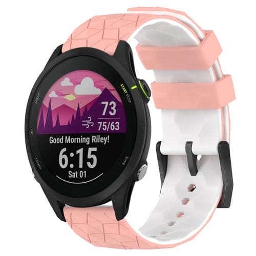 Banda de Reloj para Garmin Forerunner 255 Music 22mm Patrón de Fútbol Silicona Dos Colores (Rosa + Blanco)