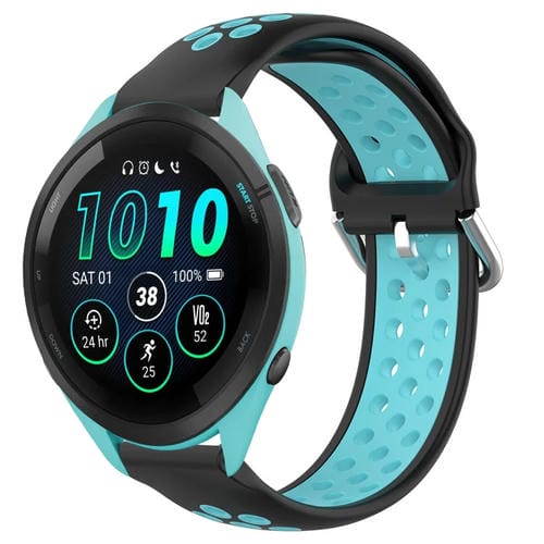 Correa de Reloj Silicona Deportiva para Garmin Forerunner 265 22mm Transpirable (Negro + Azul)