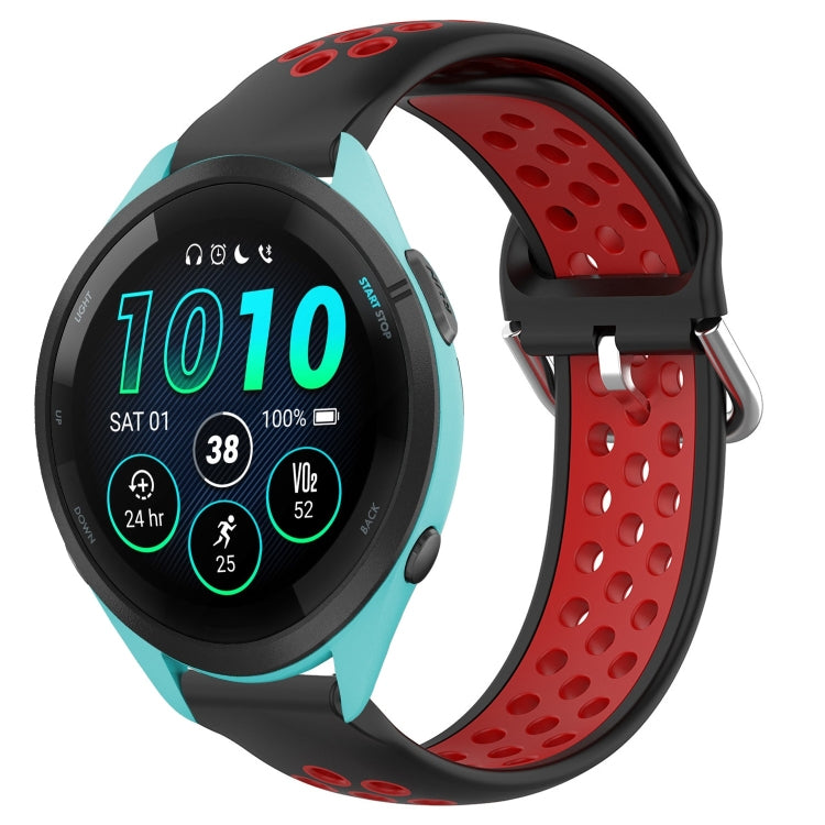 Correa de Reloj de Silicona Deportiva para Garmin Forerunner 265 22mm Transpirable Perforada (Negro + Rojo)