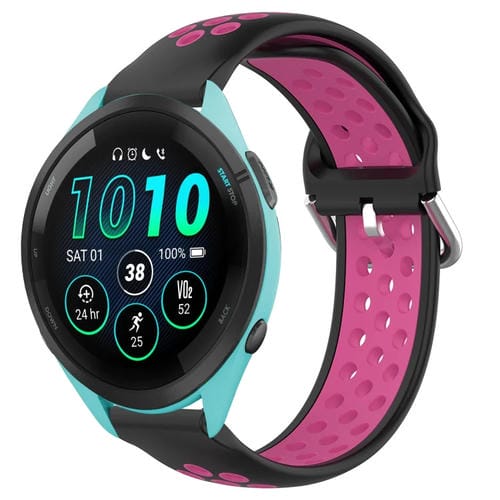 Correa de Reloj Silicona Deportiva para Garmin Forerunner 265 22mm Transpirable (Negro + Rojo Rosa)