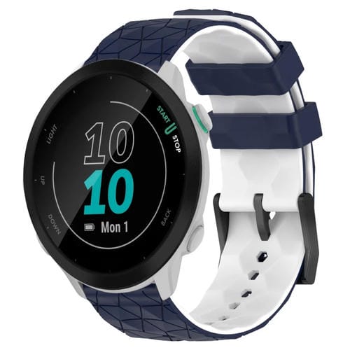 Banda de Reloj de Silicona Para Garmin Forerunner 55 20mm Dos Colores con Patrón de Fútbol (Azul Medianoche + Blanco)