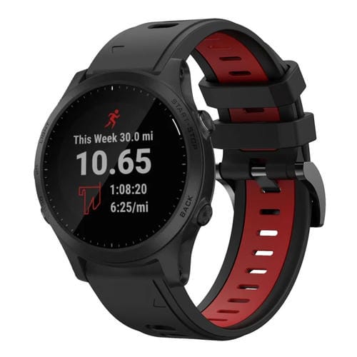 Banda de Reloj silicona deportiva para Garmin Forerunner 945 22mm (Negro + Rojo)