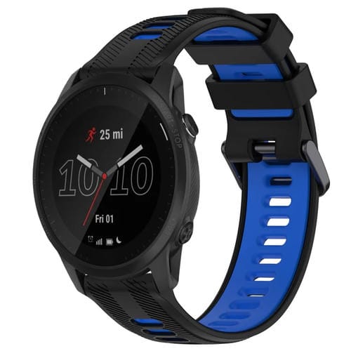 Banda de Reloj de Silicona para Garmin Forerunner 945 Sports Dos Colores (Negro + Azul)