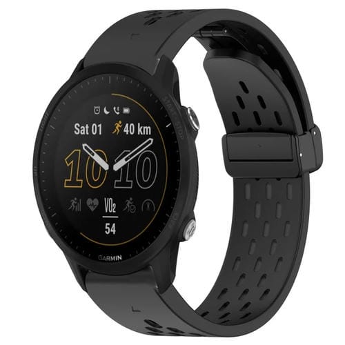 Correa de Silicona para Garmin Forerunner 955 con Orificio y Hebilla Plegable 22mm (Negro)
