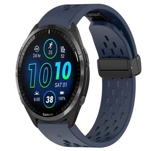 Correa de Reloj para Garmin Forerunner 965 de Silicona con Orificio y Hebilla Plegable 22mm (Azul Medianoche)